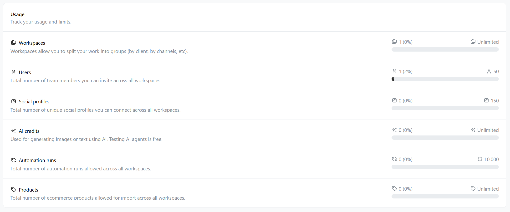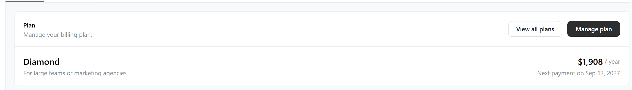 Its Diamond Plan is the “all-you-can-eat buffet”: unlimited AI credits, 150 social profiles, 50 teammates, 10k automation runs, and no caps anywhere.