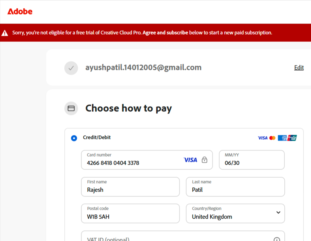 Can you tell me which VPN do you use? It keeps showing me Invalid Postal Codes and CCs.