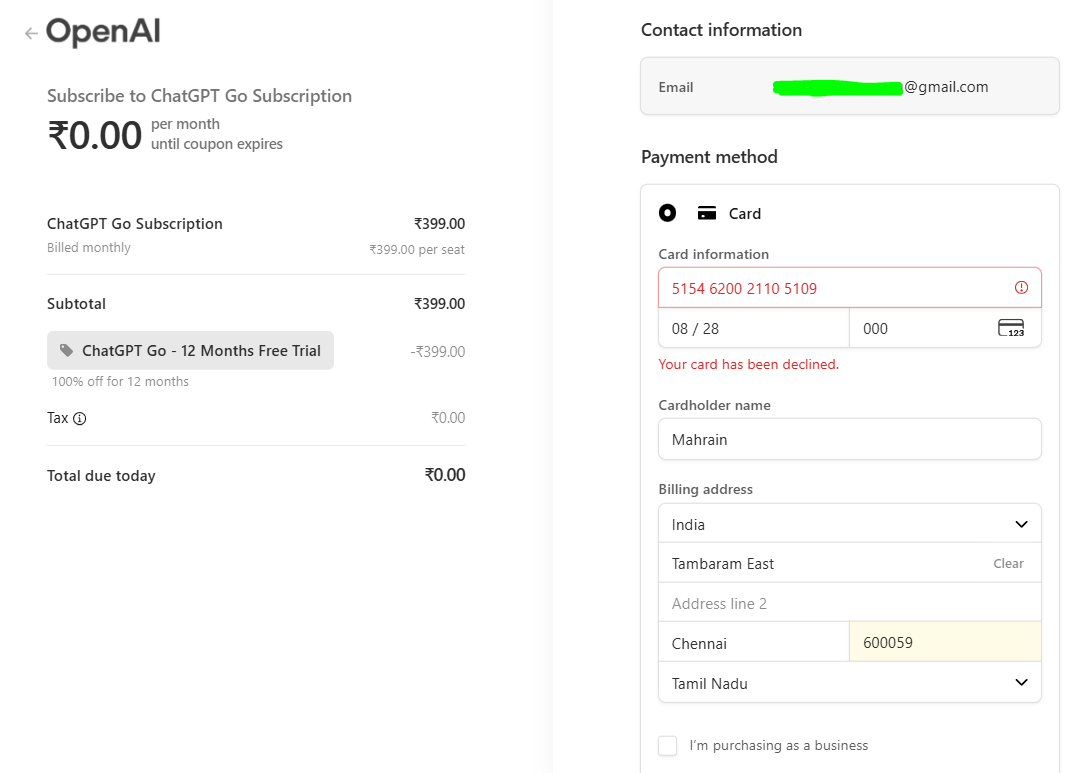 6- Put Your Original Card Details And Random Indian Address From https://www.fakexy.com/fake-address-generator-in