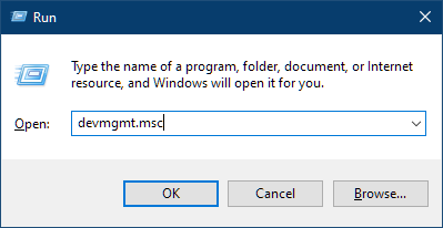 Type devmgmt.msc to open Device Management Console.
