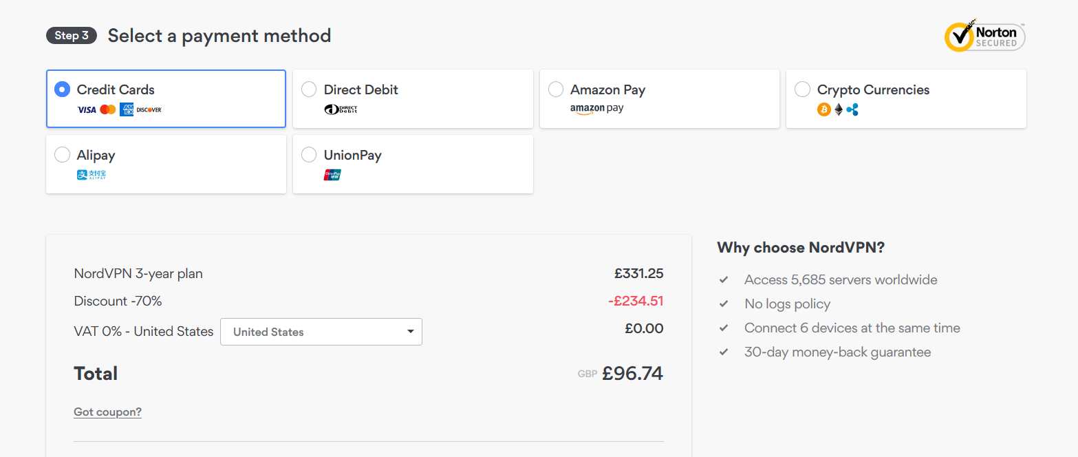 NordVPN can now collect payment(s) from you by Direct Debit.