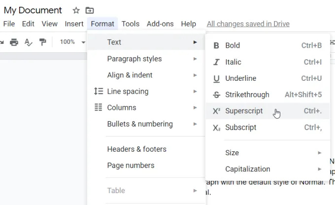 In Google Docs, there are three ways you can do subscript and superscript in Google Docs. One is using the menu system, the other is by using keyboard shortcuts, and the last is using the special characters chart.