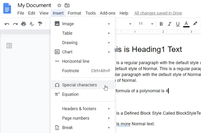 - To do this, select Insert from the menu and select Special characters from the menu.