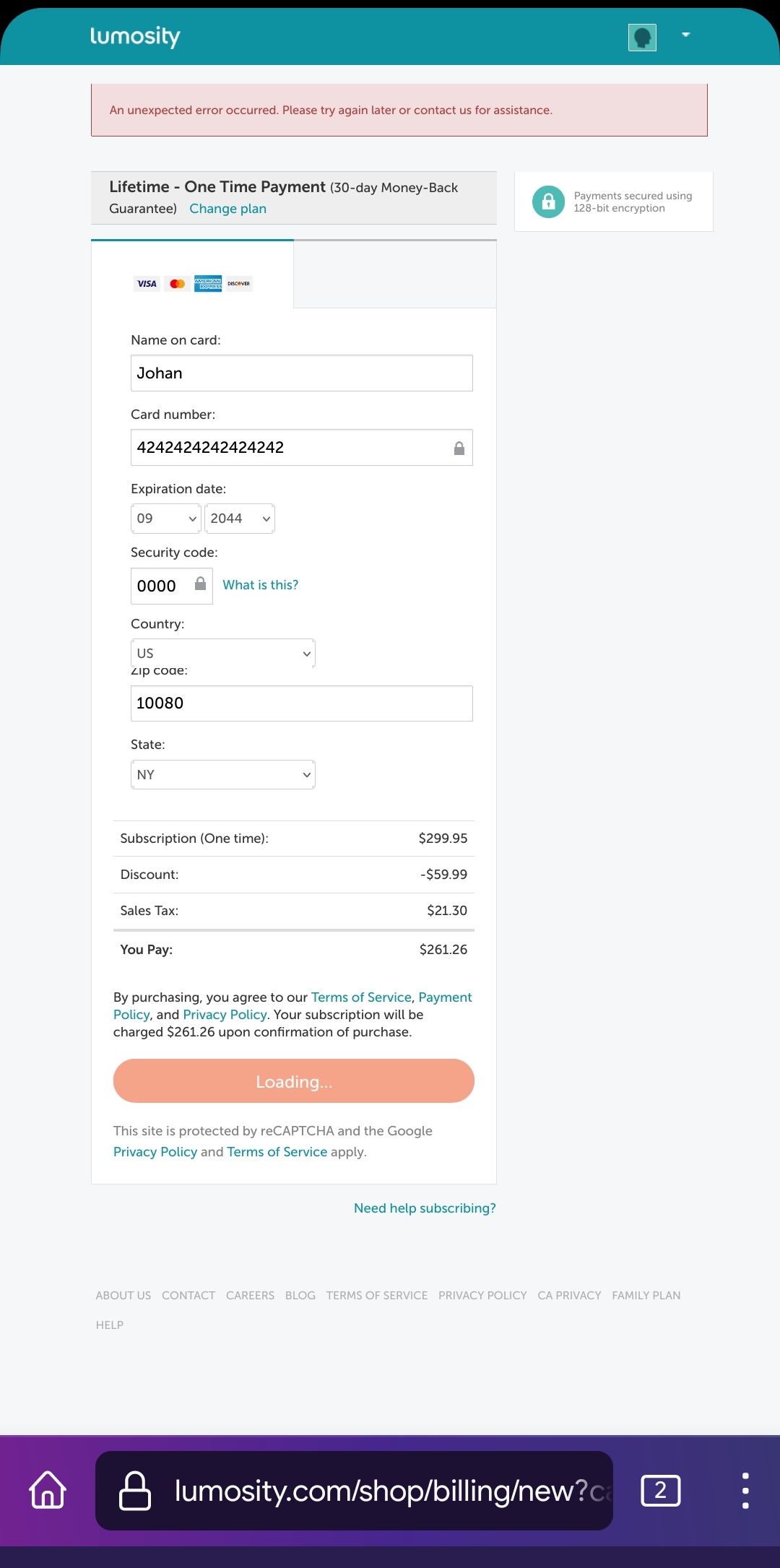 Type any name credit card expiry but use the following credit card number and cvv. (just type Visa)