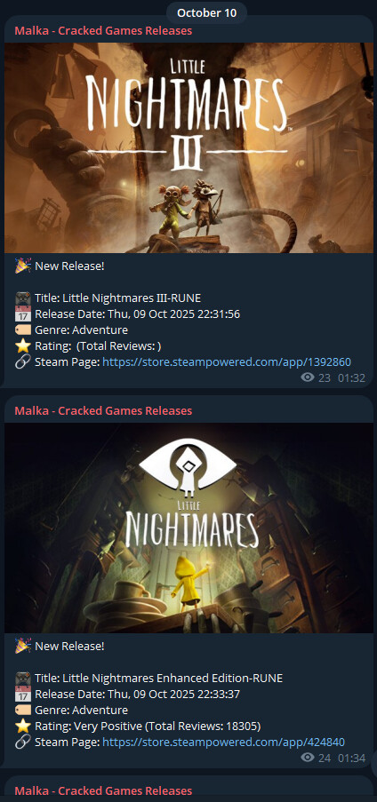 I’m sharing a new Telegram channel that reports in real time on every new cracked game released online.