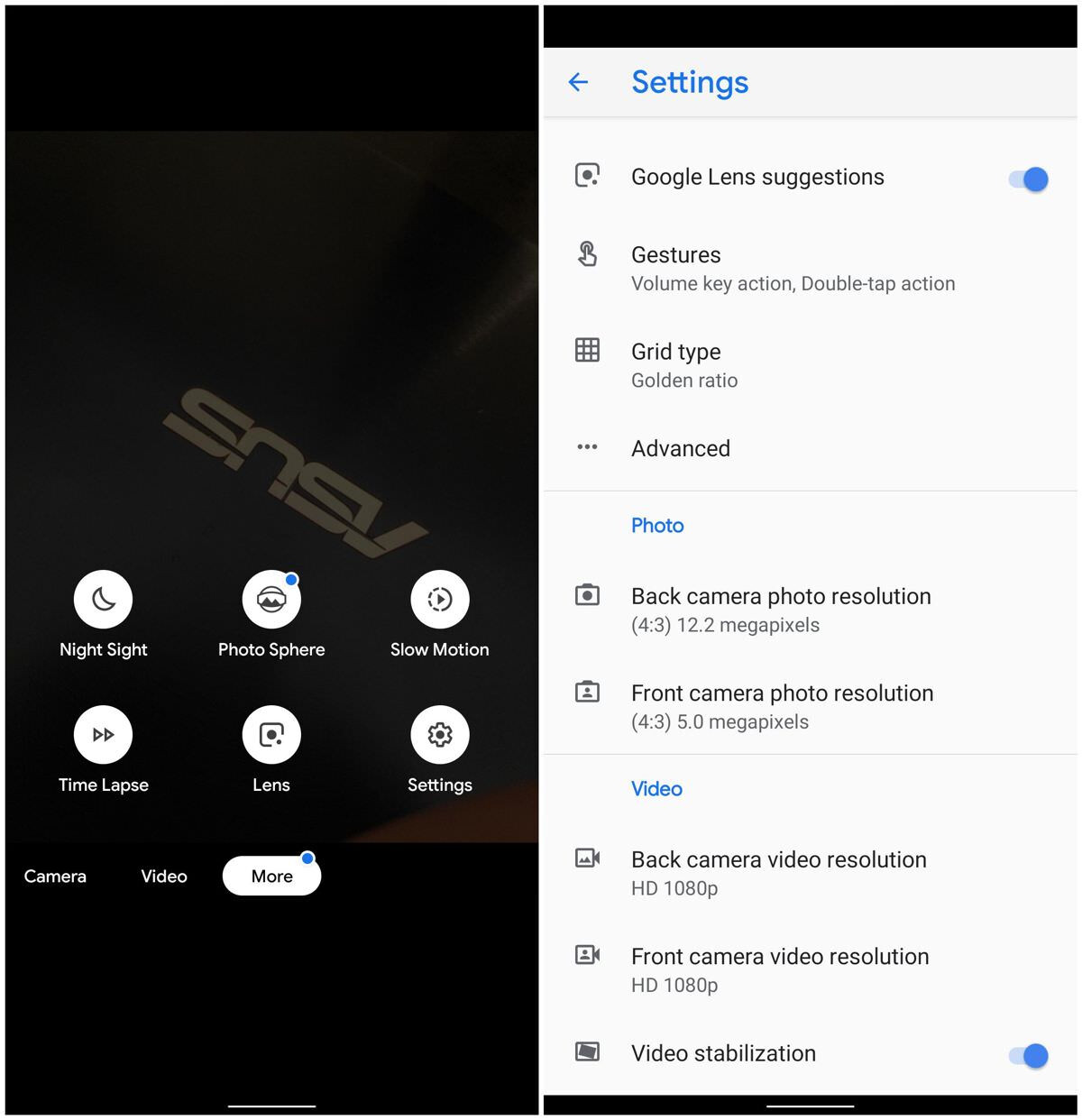 - Open Google Camera and click More > Settings.