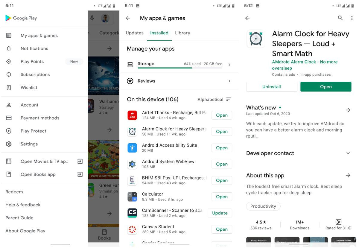 On Android, you can use Google Play Store to check all the installed apps and remove the ones you do not use. Follow the given steps: