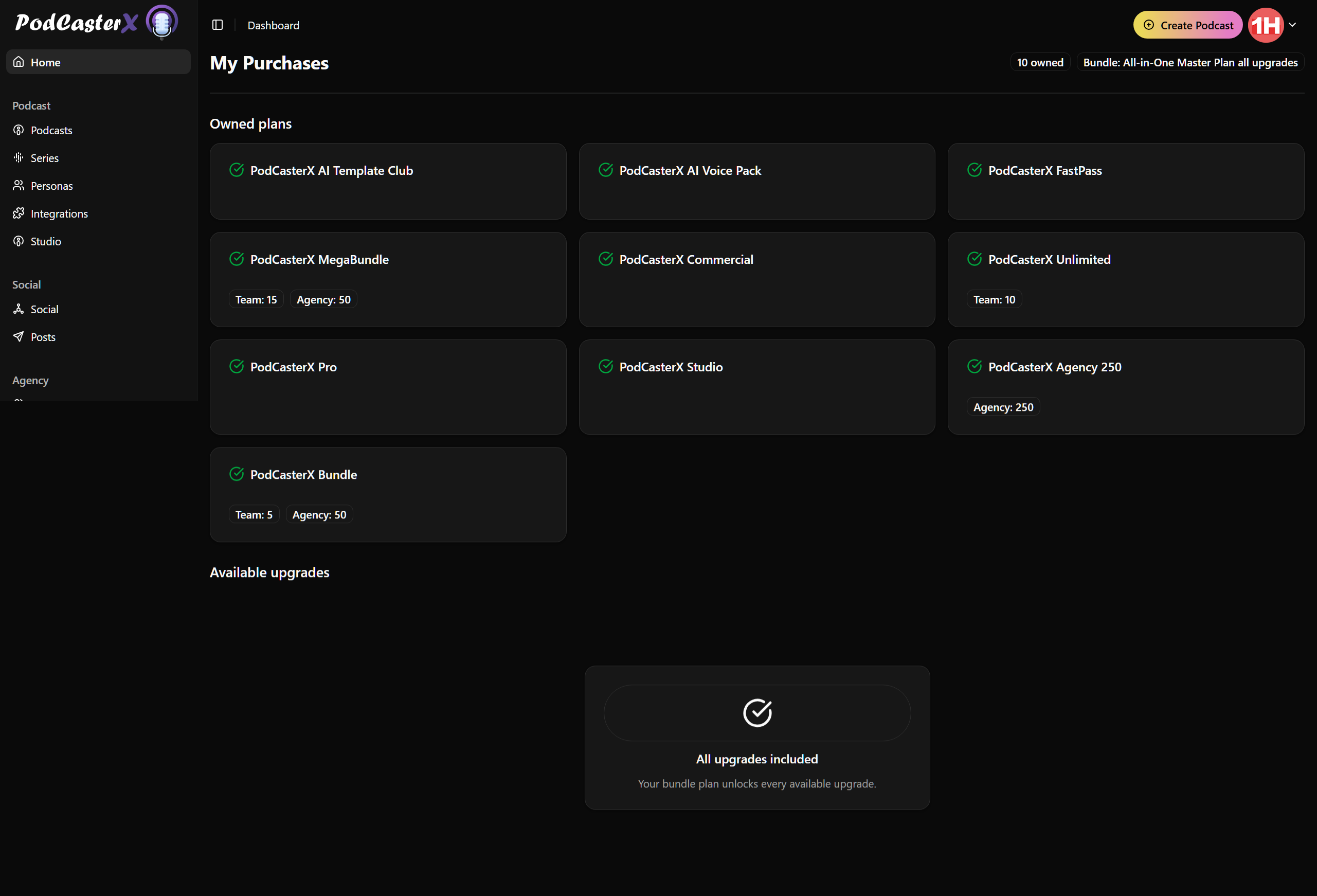 All-in-One PodCasterX Master Plan - Private LifeTime Subscription Account!