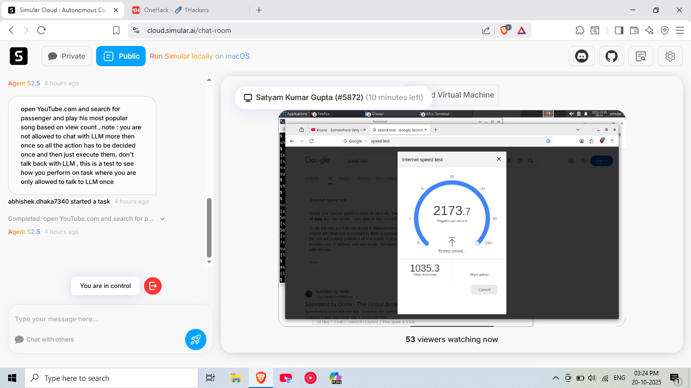 Simular.AI gives you a full-power virtual PC — 1 GB/s upload/download, insane CPU, fast RAM — all for 10 minutes at a time.
