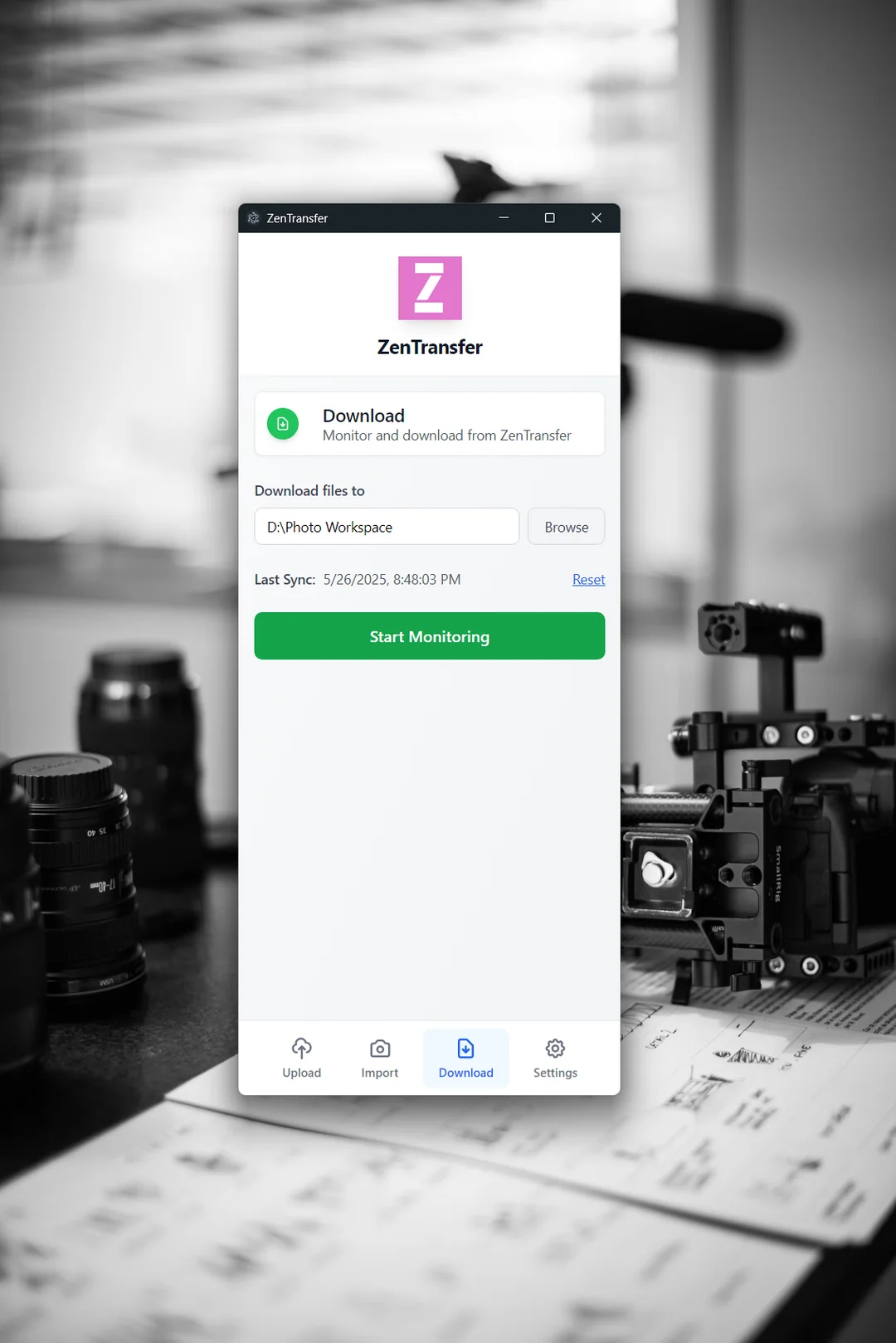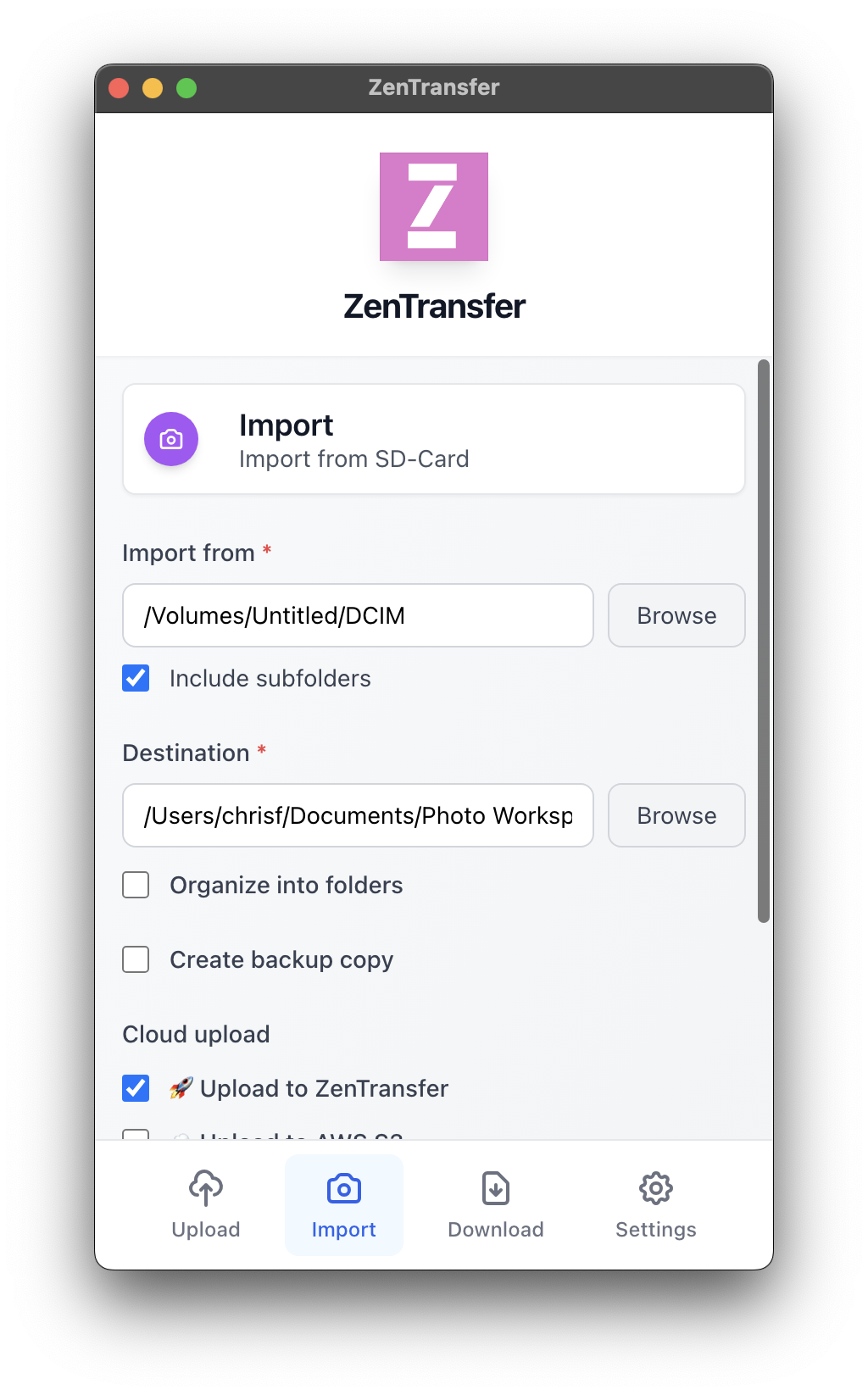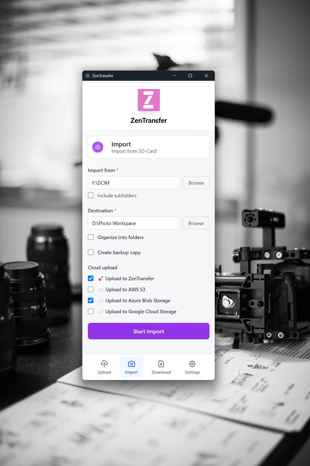 ZenTransfer is a free file transfer utility for professional photographers.